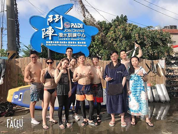 最後大家在潛店跟教練合照,留下自己狼狽的樣子。